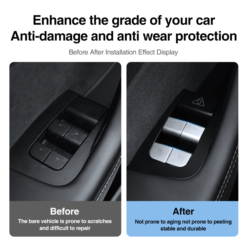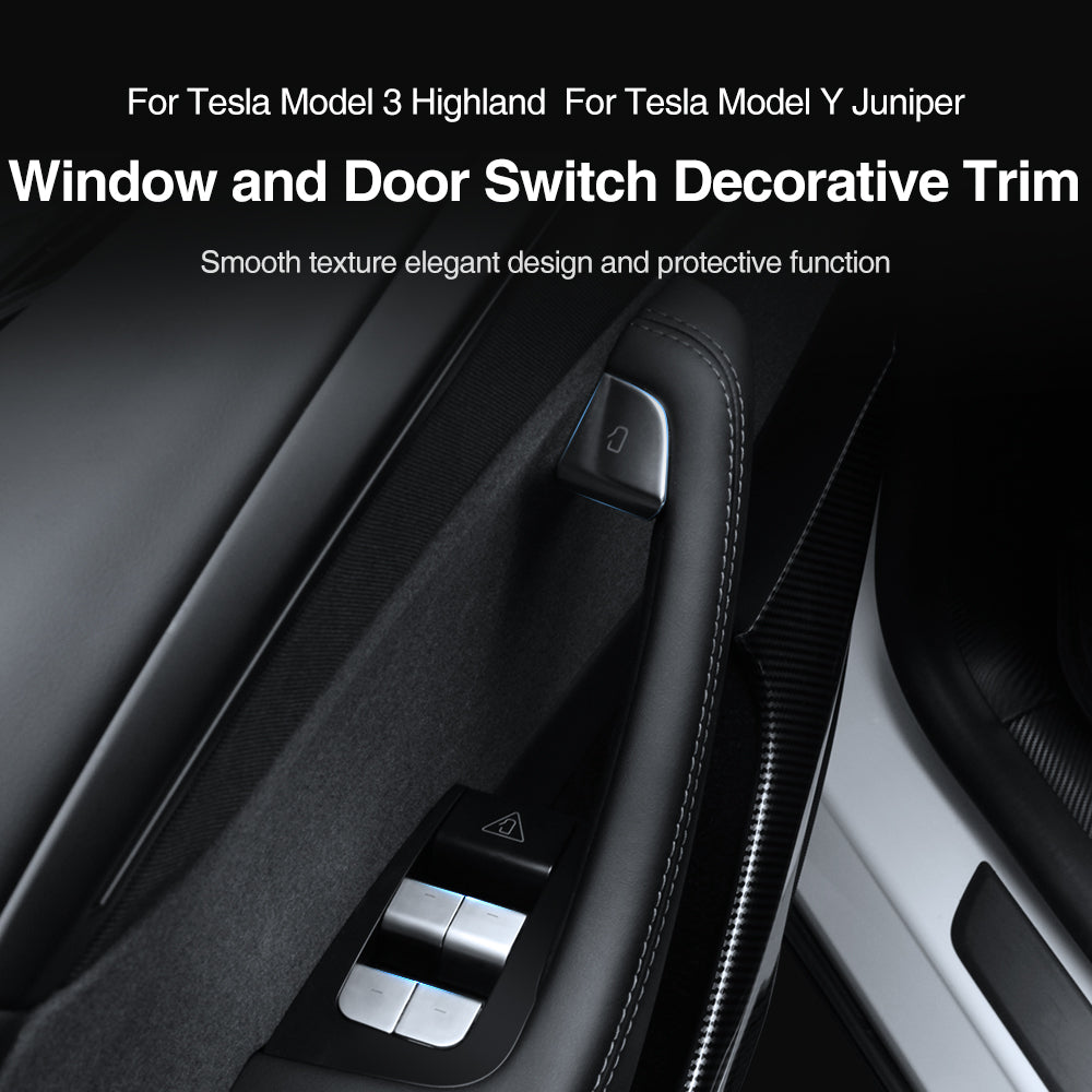 ABS Silver Car Door Car Window Button Protect Cover For Model 3 Highland/Model Y Juniper(Set of 11pcs)